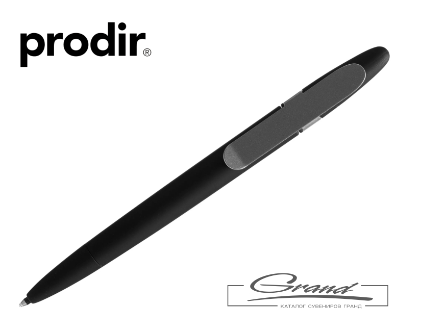 Ручка шариковая «Prodir DS5 TSR» швейцарскойкомпании Pagani Pens SA. Ручка в черном корпусеиз пластика с покрытием софт-тач и широкимметаллическим клипом под гравировку логотипа.